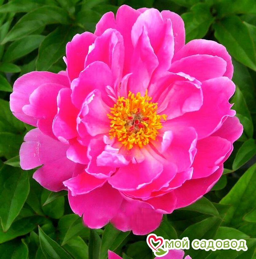 Полумахровый. Цветок большой, симметричный, розово-лавандовый с маленьким центром из золотисто-жёлтых тычинок. Лепестки с серебристыми краями. Аромат лёгкий. Цветение обильное, в полном роспуске за цветами не видно листвы. Высота 65-70 см. Стебли крепкие. Листва густая, тёмно-зелёная. Срок цветения средний. Отличный ландшафтный пион. Место посадки Для посадки пионов понадобится защищенное от ветров место с хорошей освещенностью. Сорта светлой окраски, а также пионы с простыми и полумахровыми цветками можно посадить на частично затеняемом участке, это продлит цветение и защитит цветы от выгорания. Почва для посадки Залог успешного цветения пиона в будущем — это подготовка почвы! 1. Подготовка ямы — 70*70 см на скудных песчанистых и торфянистых почвах — 50*50 см на плодородных, окультуренных почвах. ХРАНЕНИЕ ДО ПОСАДКИ: После получения посылки, рекомендуем вскрыть пакет и осмотреть корневище. Почки должны быть плотные и розового цвета. Так же уделите внимание самому корневищу, все сомнительные, потемневшие, сморщенные части удалите, а места среза обработайте зеленкой или залой. Если почки еще не тронулись в рост, а высаживать в открытый почву рано, советуем Вам хранить корневище в холодильнике, обязательно оставляя его в пакете с торфяной смесью или в коробке под снегом. Если почки успели раскрыться это не критично, сохранить до посадки их так же возможно, высадите корень пиона в большой просторный горшок или в любую другую ёмкость.